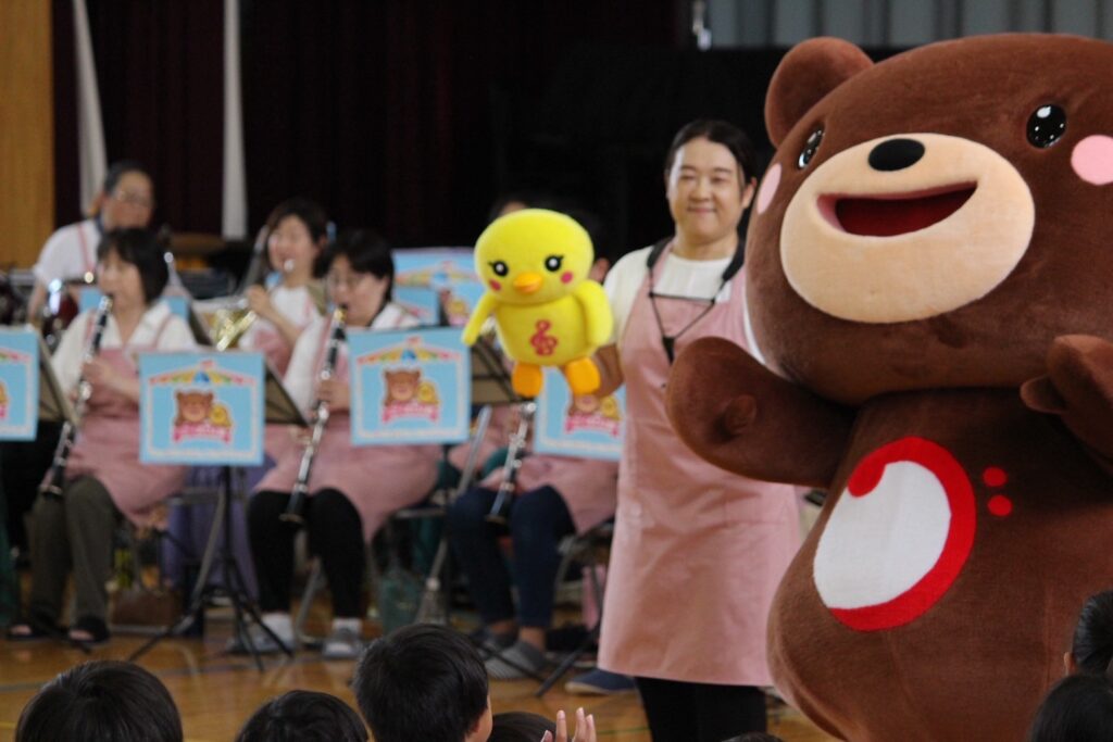 昨年から授業の一環としてくまぴよ隊さんが小学校で演奏会を開催してくださっています。
