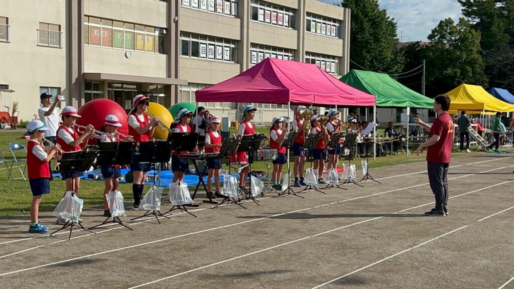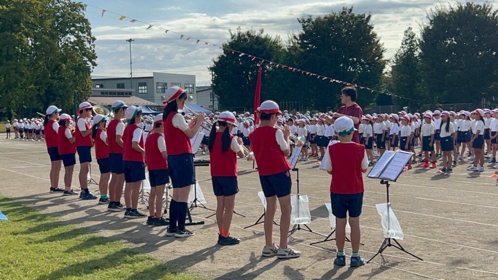 【金管バンド】運動会開会式で校歌演奏 2025年10月10日 最終更新日時 : 2025年10月10日 kumagaya_edit 9月27日に開催された運動会の開会式で校歌を演奏しました。 また、開会式前に鉄腕アトムも演奏しました。演奏を全児童、先生そして保護者の方に聞いてもらえてよかったです。