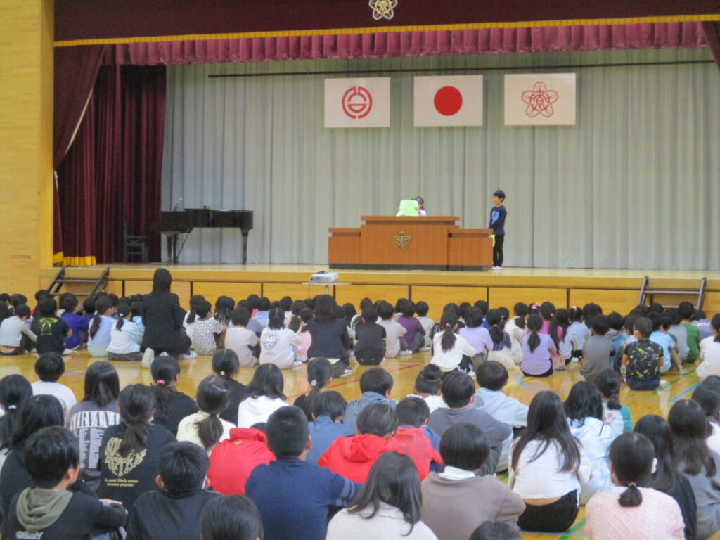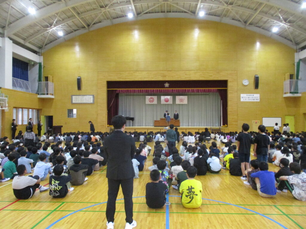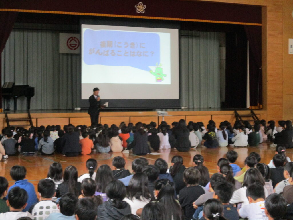 今朝は後期始業式があり、後期がスタートしました。表彰でステージに上がる児童や後期頑張りたいことを話す代表児童の態度が素晴らしく、また他の児童も待つ姿勢や拍手をしっかりしている姿が大変素晴らしかったです。一人一人が後期の目標をもち、笑顔で毎日を過ごせるように頑張ってほしいと思います。