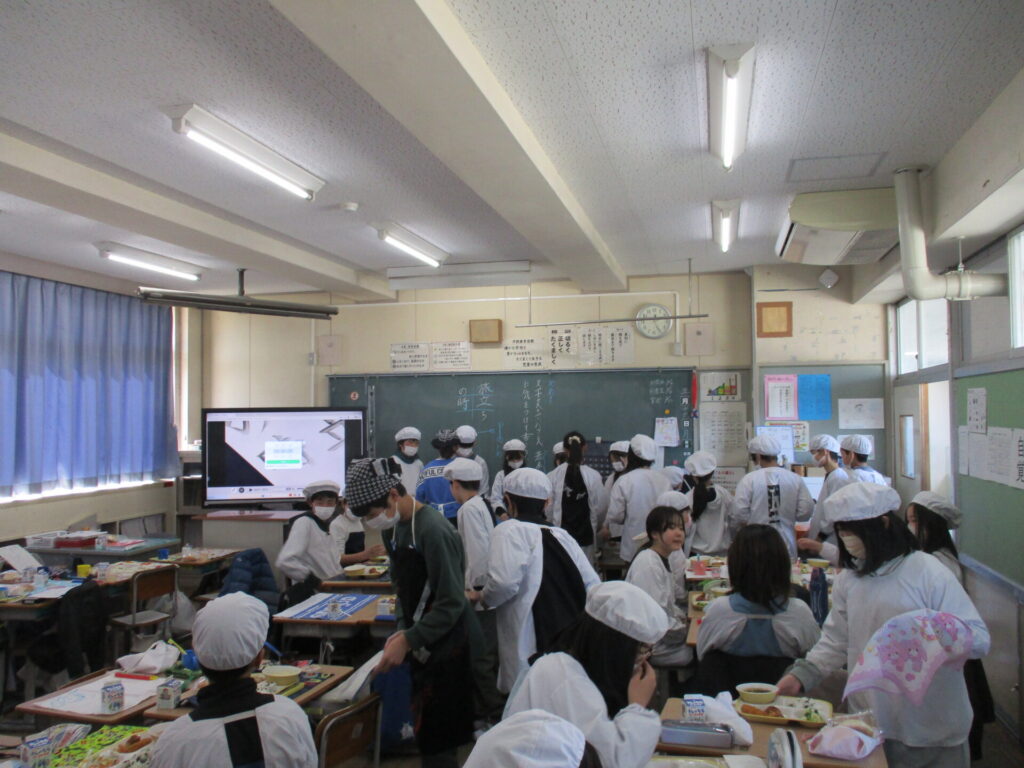 また、6年生は「セレクト給食」があり、自分で選んだメニューを楽しみながら、いつも以上においしそうに味わっていました。特別な給食時間になったようです。