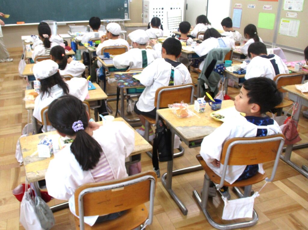 2~6年生は給食が始まりました。新しいクラスの仲間たちとおいしくいただきました。1年生も1週間後においしい給食が待っているので、楽しみにしていてくださいね。