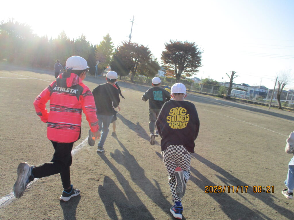 今日から朝マラソンが出来るようになりました。12月の持久走大会に向けて、自主的に朝マラソンをしている児童がたくさんいて大変素晴らしかったです。今後はより気温が低くなりますが、1日1周でも走り続けていき、1人でも多くの児童が自分の目標を超えられるように頑張ってほしいと思います。