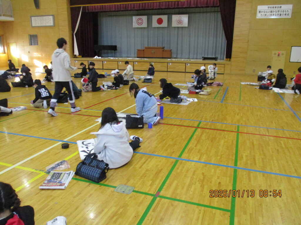 今日は冬休み前からたくさん練習をして頑張ってきた書きぞめの制作会がありました。一人一人が今までで一番良い作品にできるように集中して書いていました。4年生は1時間目と2時間目、3年生は3時間目と4時間目と長い時間行いましたが、最後まで諦めずに取り組む姿勢が素晴らしかったです。