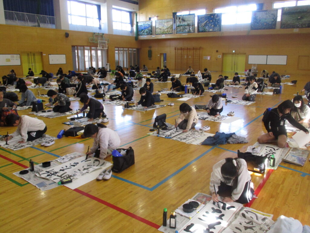 今日は高学年の書きぞめ作品制作会がありました。諦めずに最後まで集中して取り組んでいる姿はもちろん、1枚1枚自分で反省をしながら良い作品にするために考えている姿が大変素晴らしかったです。特に6年生は小学生最後の書きぞめであるため、多くの児童が残り時間が少なくなっても頑張って書き続けていていました。