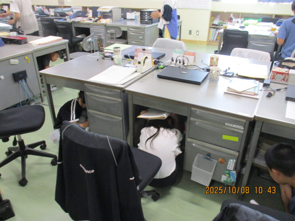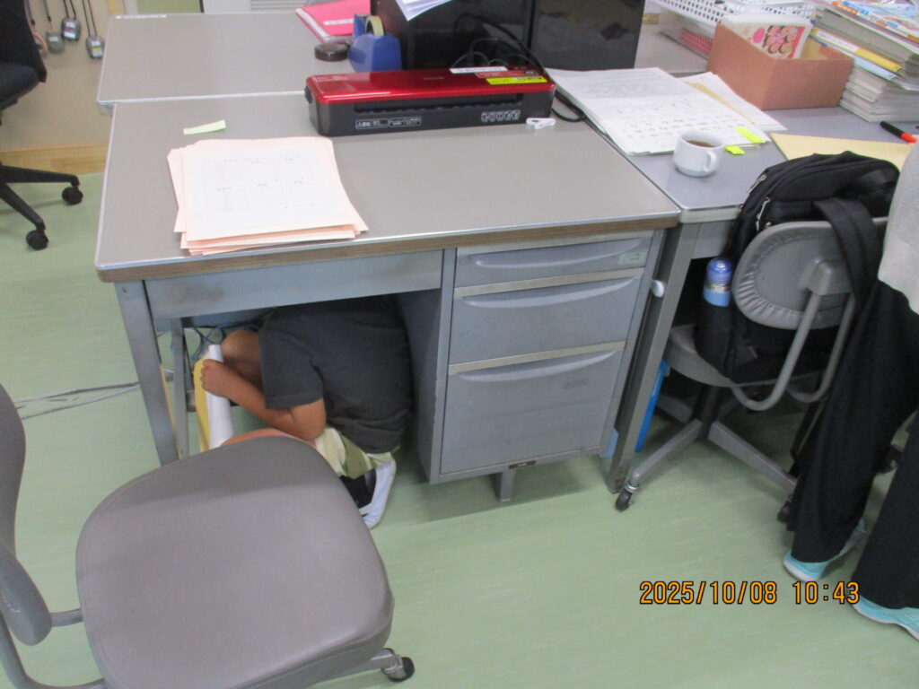 今日は、業間休みに今年度2回目のショート避難訓練を行いました。教室などの室内で過ごしていた児童は素早く机の下に隠れたり、外遊びを行っている児童も先生の指示で中央に集まったりするなど、担任の指示がなくても自分で考え、行動することができていました。