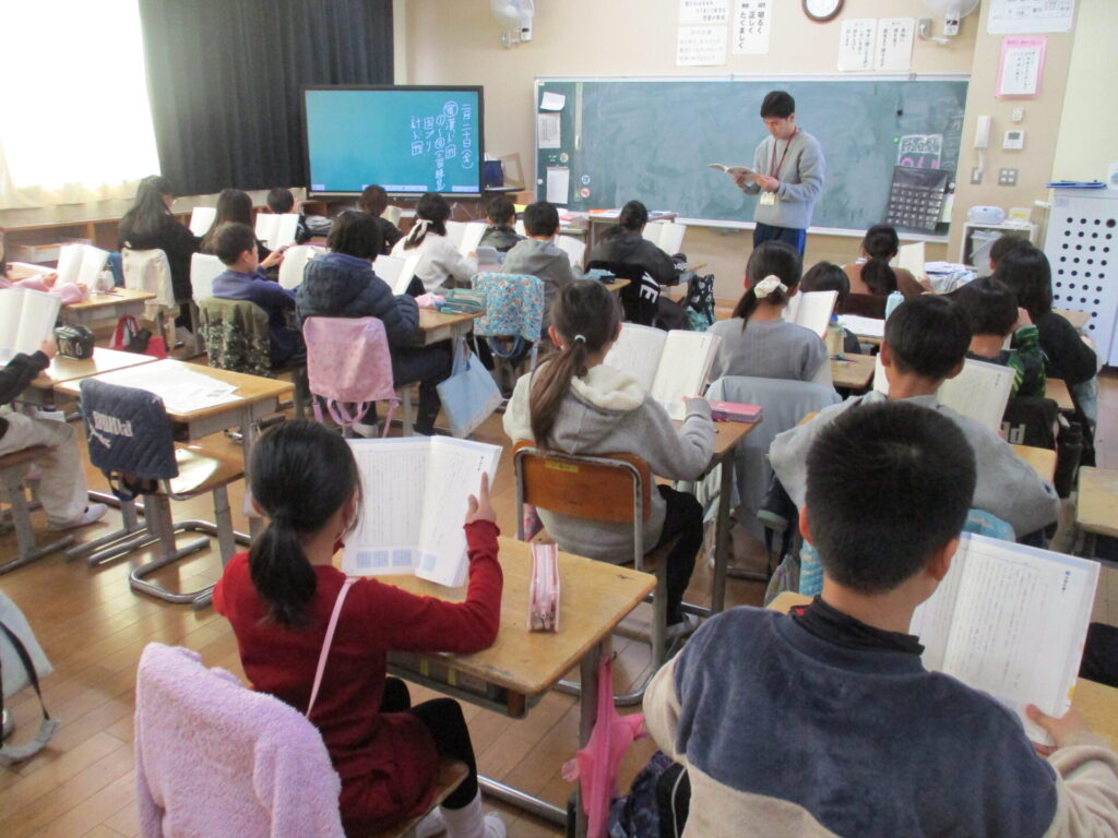 ALTのクラウディン先生と一緒に、楽しそうに英語で会話をする姿が見られ、教室には笑顔があふれていました。