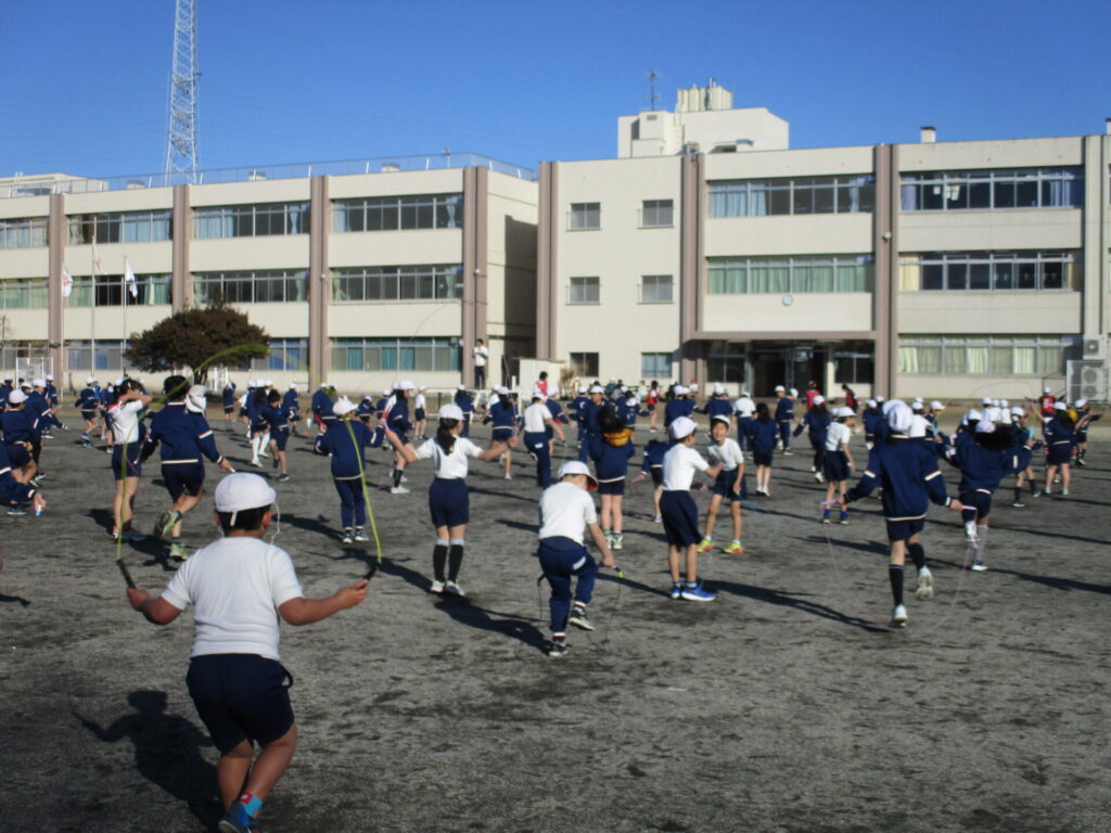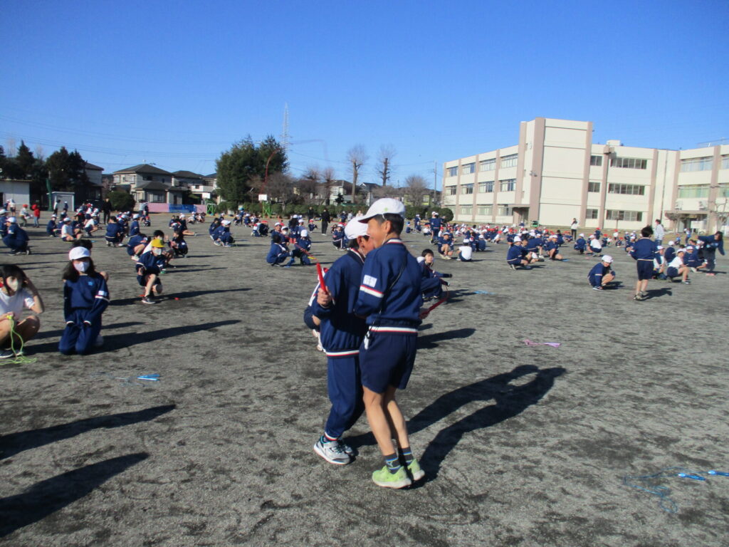 風がとても強い中でしたが、子どもたちは元気に縄跳びに挑戦していました。