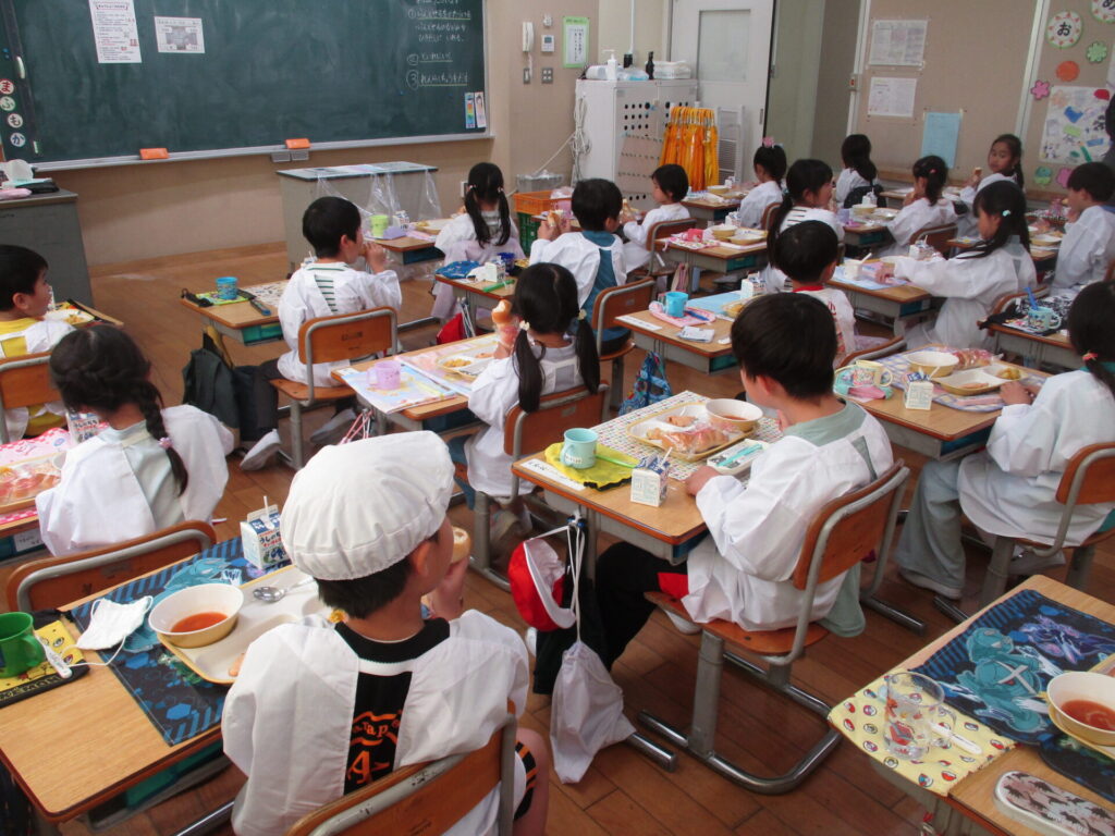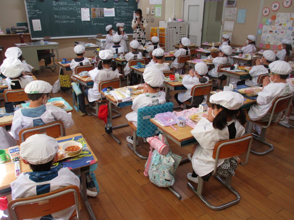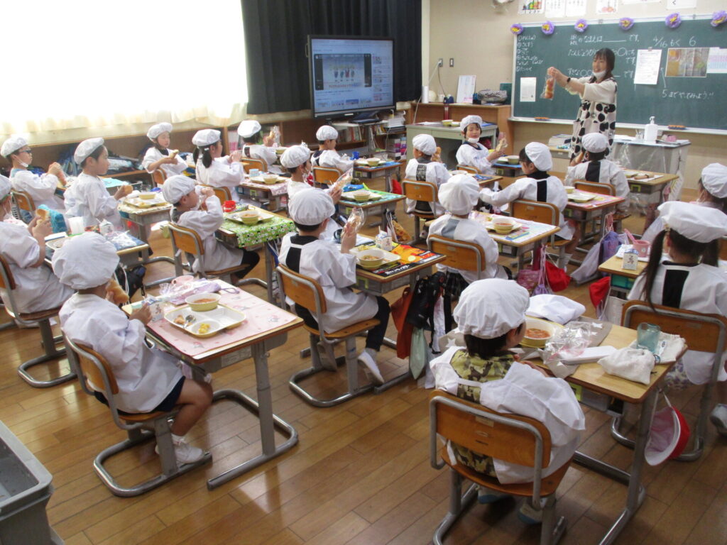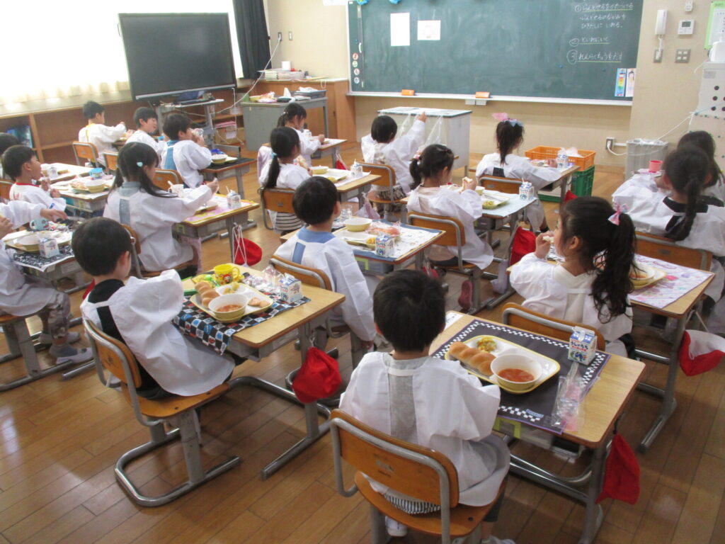 今日から1年生の給食が始まりました。ワクワクドキドキで笑顔あふれる子供たちでしたが、担任の先生の話をしっかり聞いて、落ち着いて準備することができました。「いただきます」をすると「おいしい」という声が色々なところから聞こえてきました。しっかり食べて、午後も頑張っていました!
