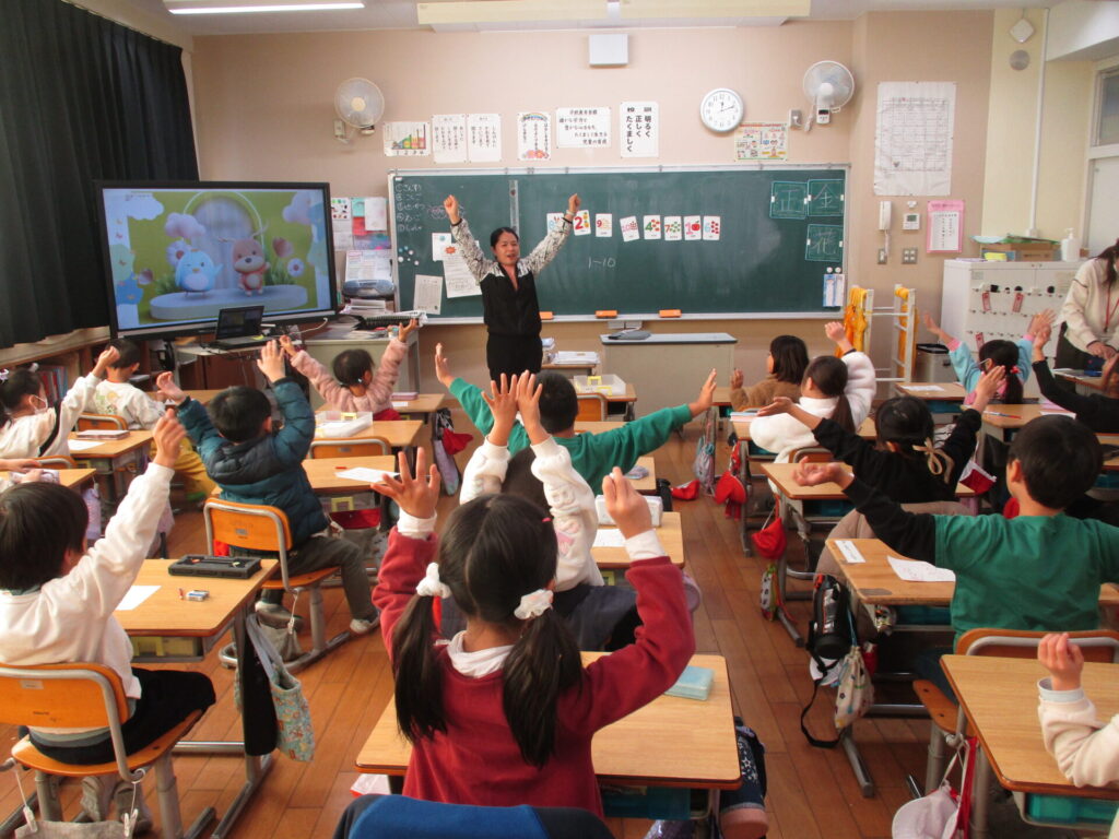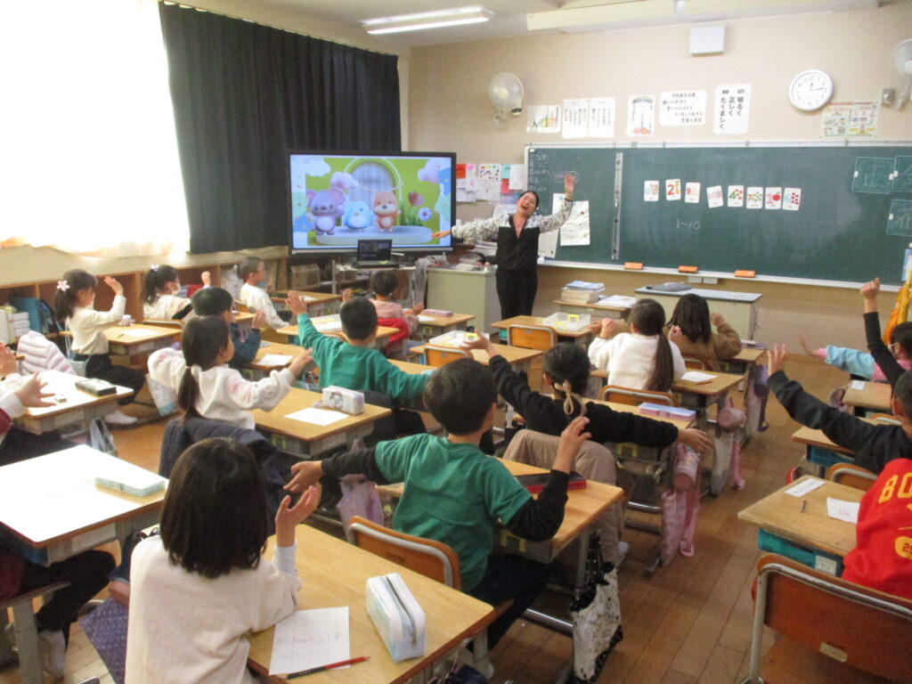 また、今日は1年生の外国語特別授業がありました。笑顔で歌ったり、踊ったりするなどの体験を通して、外国語について学びを深めることができました。ビンゴでは、先生と一緒に数字を英語で言っている様子がとても素晴らしかったです。