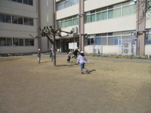 今朝は涼しく、風もほとんど吹いていない過ごしやすい気候の中、プレイタイムで元気に走りました。前期最後のプレイタイムでしたが、一人一人が自分のペースで走りきることができていて、成長を感じることができました。